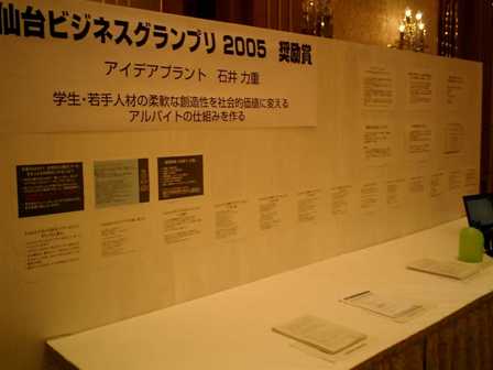 本日は、仙台ビジネスグランプリの表彰式に招待されてパレス平安にいってきました。アイデア出しの代行サービス「アイデアプラント」にありがたい事に奨励賞をいただきました。