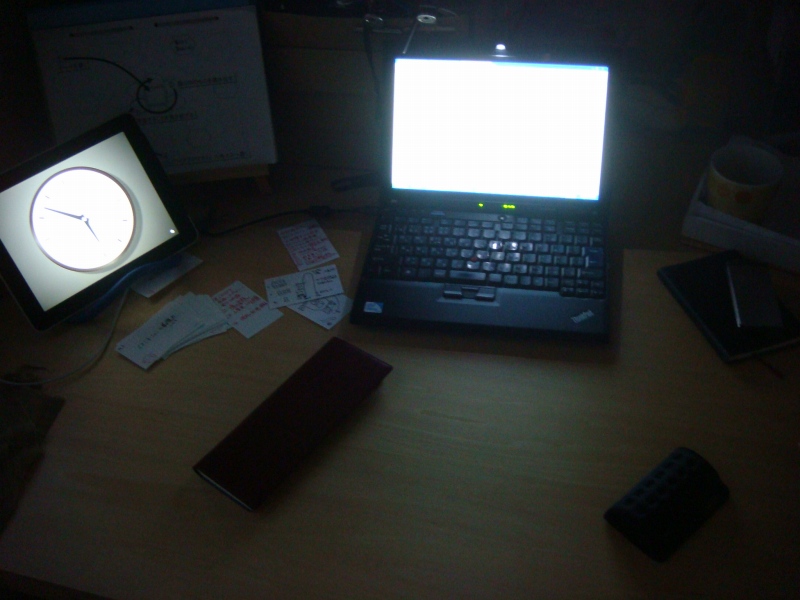 - ThinkPadのライト機能で、キーボードは見えるようにして、視界の中にPCだけがある、という感じにする。