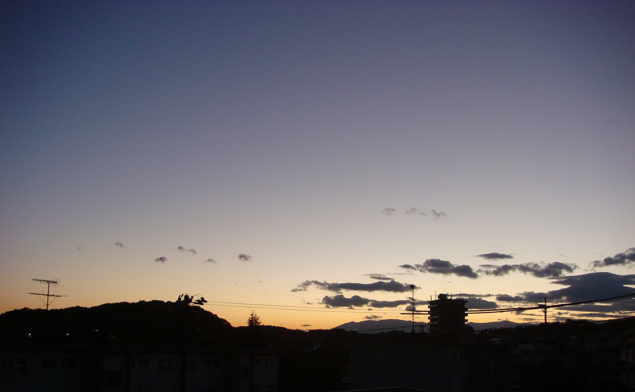 2010.11.07 日記、価値観、仙台オススメ 透き通るような夕暮れ最近、夕暮れが美しくて、無心で眺めてしまいます。数日前の夕暮れです。先日の燃えるような夕焼け http://ishiirikie.jpn.org/article/41549611.html とは違い、この日の夕暮れは、澄み切った透明感のある、上品な空気感がある空でした。偶然、ふと見上げた時に、美しい夕焼けがある。金銭的な価値とか、流通可能ななにか、とは違うものが、いっぱい生活を取り巻いていて、私たちの日々はあるのだろうと、よく思います。経済的な価値の創造も大事であり、しかし、それ以外のところにも、いろんな、目に見えにくいものがあって幸福を形成しているのだ、それを正面から見ようとしないところには、みずみずしい創造はないのではないか、と思い、こういうふとしたことにも、立ち止まって、じっと見ています。(僕の話はよく、脱線します。) « ゲームアイデアBrainstorm 最終の新幹線で聞きました »