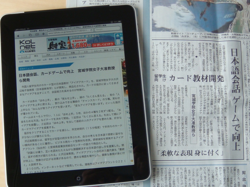 留学生により柔軟な日本語会話を学んでもらうツールを作りたいという、宮城学院女子大学の澤邉先生の開発を、アイデアプラント及び宮城県産業術総合センターが支援、ということで、私の名前も紹介していただきました。
