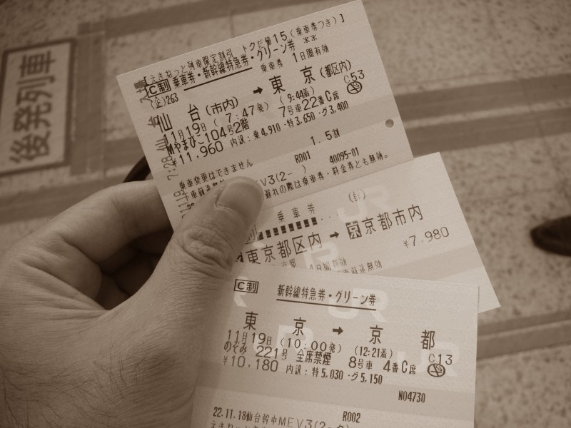 新幹線で「仙台→東京→京都」の移動をする時の費用の目安をちょっとまとめてみます。