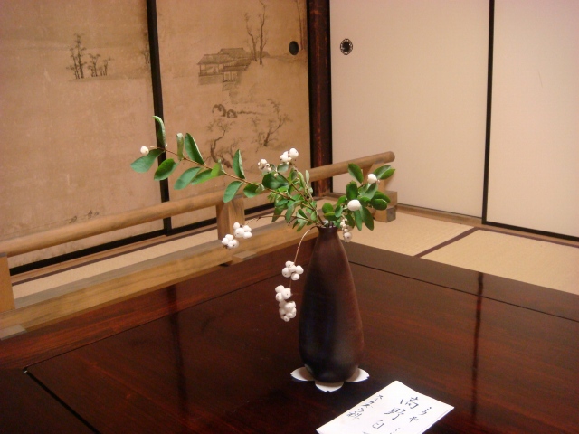 みんなほとんど見ないですすんでしまいますが、この部屋には趣のある不思議な花がいけてありました。
