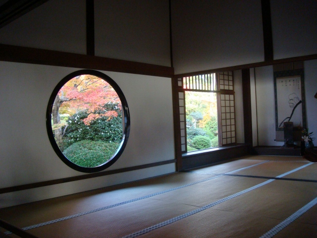 京都、源光庵。「悟りの窓」と「迷いの窓」
