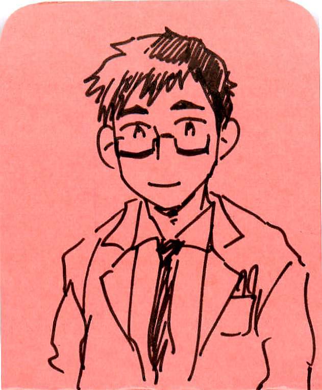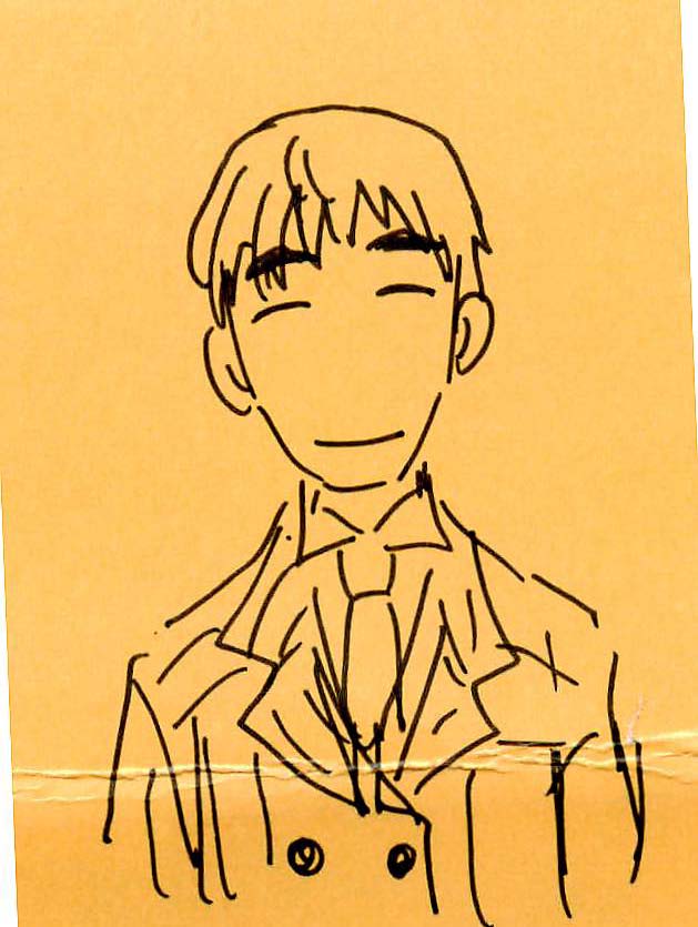 その後輩氏を絵にしてもらいました。穏やかそうな、サブキャラらしい、テイストです。スーツはダブル。