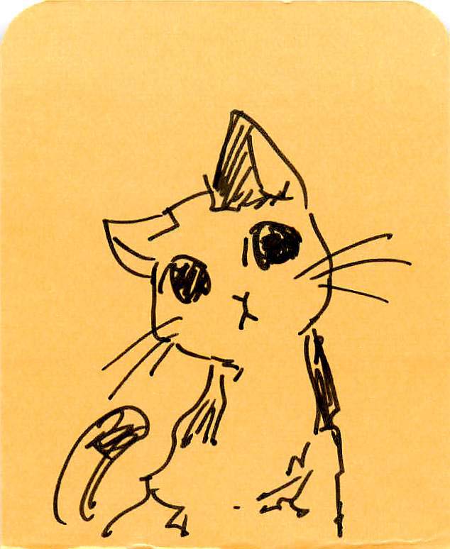 「これは、聡明そうな、美人猫ですね。この猫がいつも傍らにいて、あんまり人気はない研究室の中の午後の日差しの中で、猫と二人、もくもくと研究に打ち込んでいる、そんか空気がありますね。その猫が、山の中から戻ってきたときに、珍しい粘菌をつけて帰ってきて、それを契機にお話が動ごきだす、なんてのも、いいかもしれませんね。」「いや、猫はただ、猫であり、世界を構成する空気で。そういう感じもありかな」などなど、具体的に描くと、そこから広がります。さらに、周辺へ。