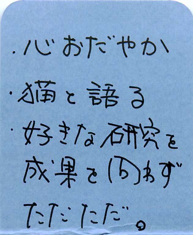 ・場面が変わって、男はいつもの研究室にいる。ドタバタの末、また、質素で志した道を行くような日々に戻れた。相棒の猫に、今日ぐらいはいいものを食わせてやろう、と、奮発しておいしいさなかを買ってきた。