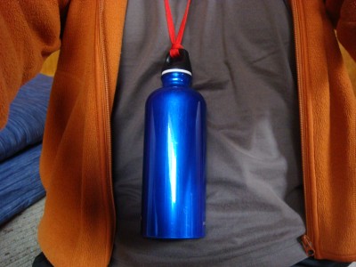 アルミでできていて、600mlぐらいの液体が入れられます。本体がとても軽く、その割に丈夫である、という特徴があります。