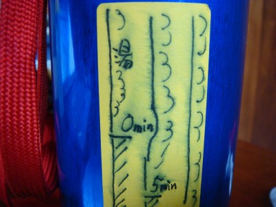 アルミ水筒で暖を取る+「お湯の水割り」メモリ