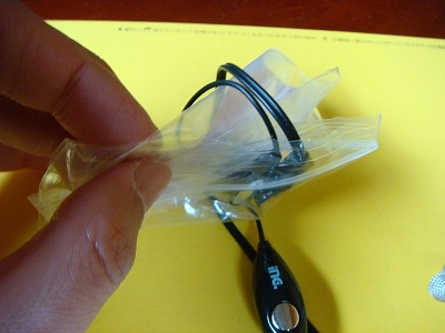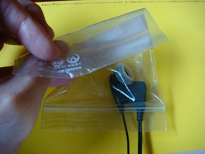 カバンの中にずっと入れていたのはこれです。携帯電話のイヤホンマイク。周りがうるさくても聞こえる・伝わるので重宝しています。ケーブル類全般に同じことができます。