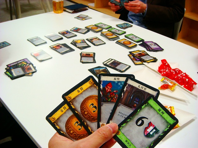 また、日本人同士のコミュニケーションの円滑さを補うのは、過去には麻雀に見られましたが、こういう戦略ゲームで、ああだこうだと、気付きを言いながらやったり、時にはわるぶっせ戦略的なことをいってみたり、そういう場を暖かいものにする要素も、特筆したいものでした。ドイツのボードゲームが、企業教育の分野の人がプライベートでよく興味を持って言及されているのも、むりないな、と思うのでした。