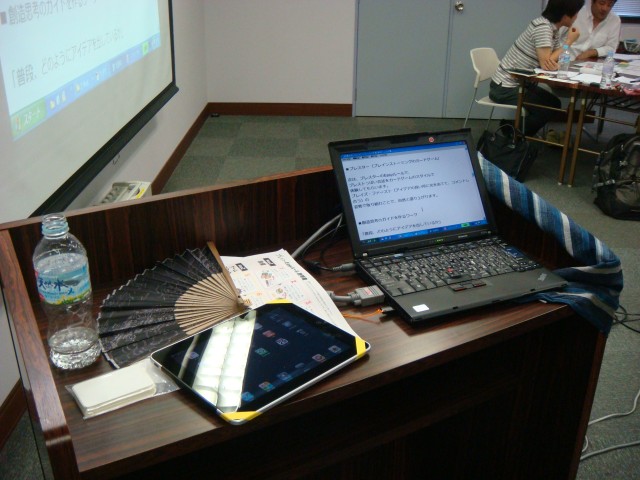 2011.06.29 アイデアプラント 2nd (2009-2011) 松阪、八時間、アイデアワークショップ、レジュメアイデアワークショップ_レジュメ(松阪).pdf本日の松阪でのアイデアワークショップのレジュメです。 基本的には、今回はアナログです。関連資料については、参加者の方から希望があれば、データで配布しますので、名刺のアドレスへご連絡ください。 ※ 多くのアンケート&質問に対して、 シェアしたいノウハウがあります。 大量にある為、この場ではなく、場を変え 回答していきたいと思います。追加掲載:(当日の私の手元です。 PC、iPad、扇子、お水、カード、松阪の柄の風呂敷) « ブレインストーミングCafe(アイデア創発分室)今週もあります。管理人は佐藤さん。 松阪でアイデアワークショップ! »