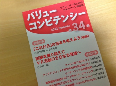 日本VE協会の協会誌、バリューコンピテンシー34号に、ファンクショナルアプローチの横田さんとの対談(後編)が載りました。