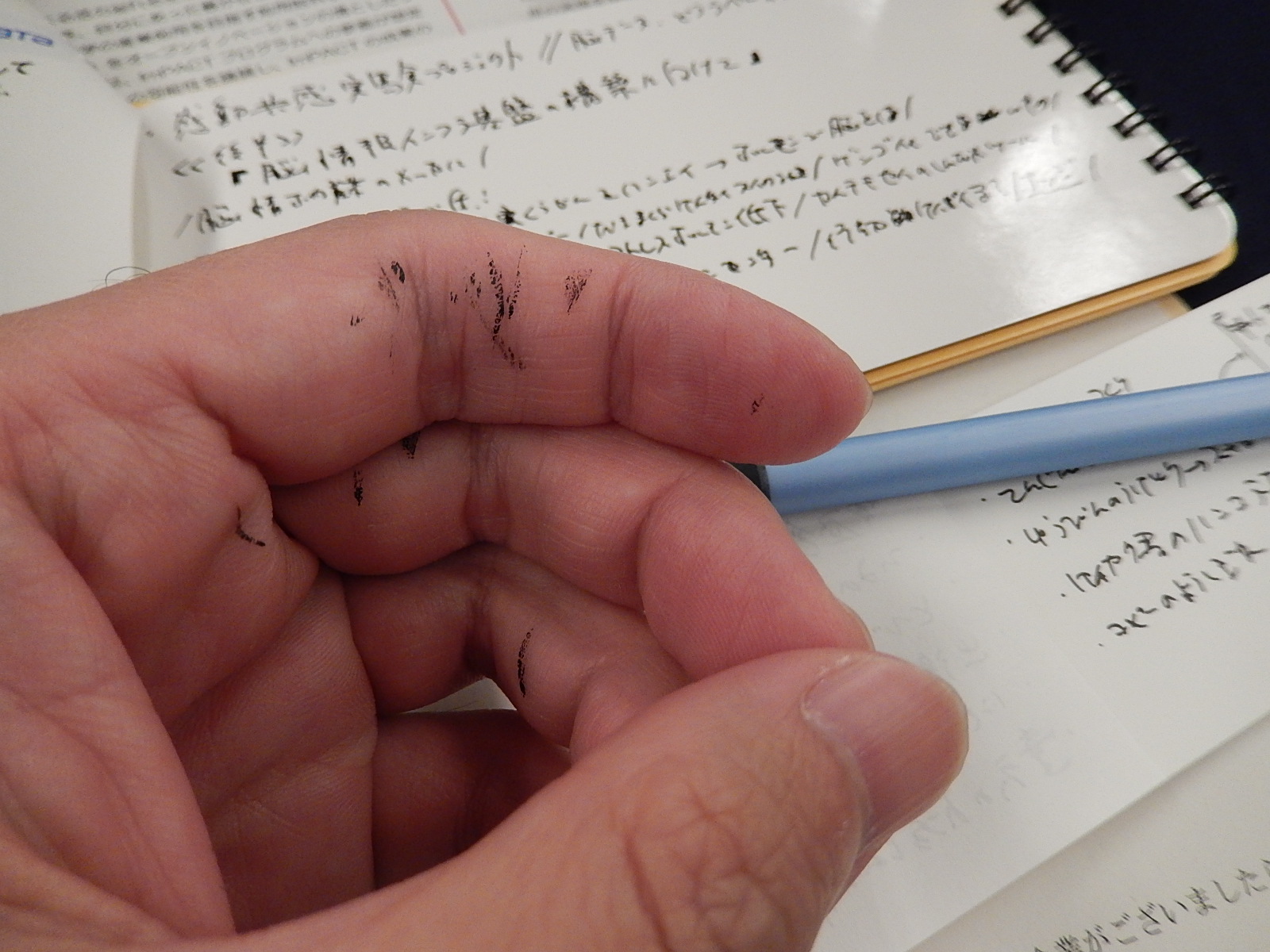 ちょうど今日は市谷で脳計測技術の応用シンポジウムがあり、聴講時のメモを、紙のノートでもなくPCへのタイピングでもなく、これをつかってみることにしました。時間は2時間。