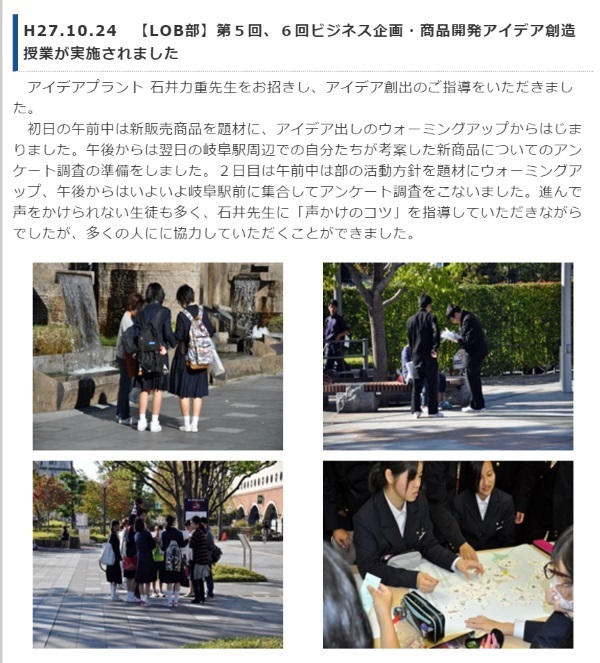 県岐阜商の公式サイトに先日の商品開発授業の様子が掲載されました。
