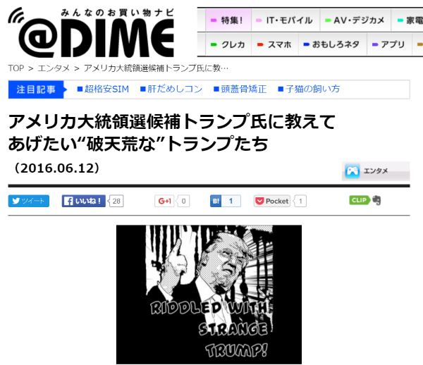 アイデアプラントの作品の一つ、アイデアトランプが、雑誌DIMEのオンラインメディア「@DIME」で、面白いトランプ群の一つとして紹介されました。