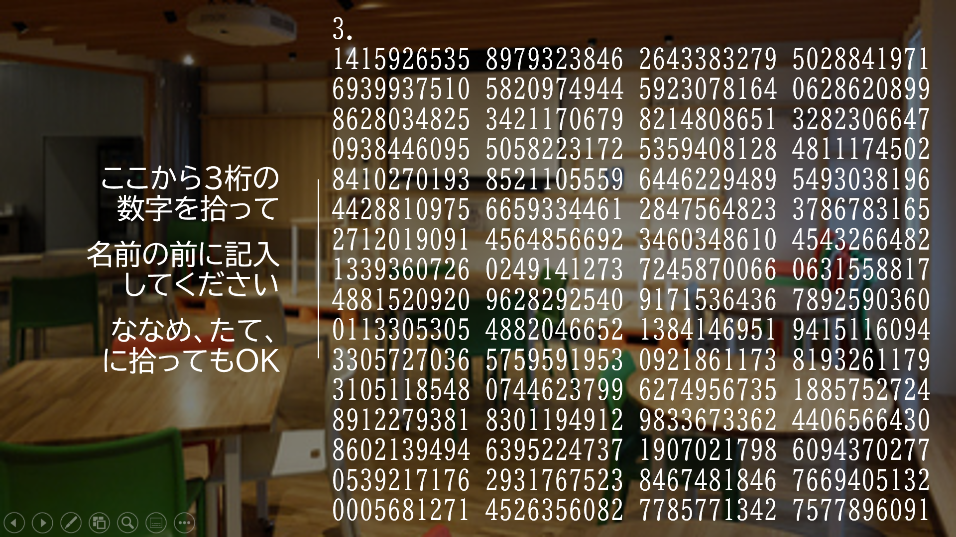 〇表は見せず、ランダムな3桁数字を各自に思い浮かべてもらう