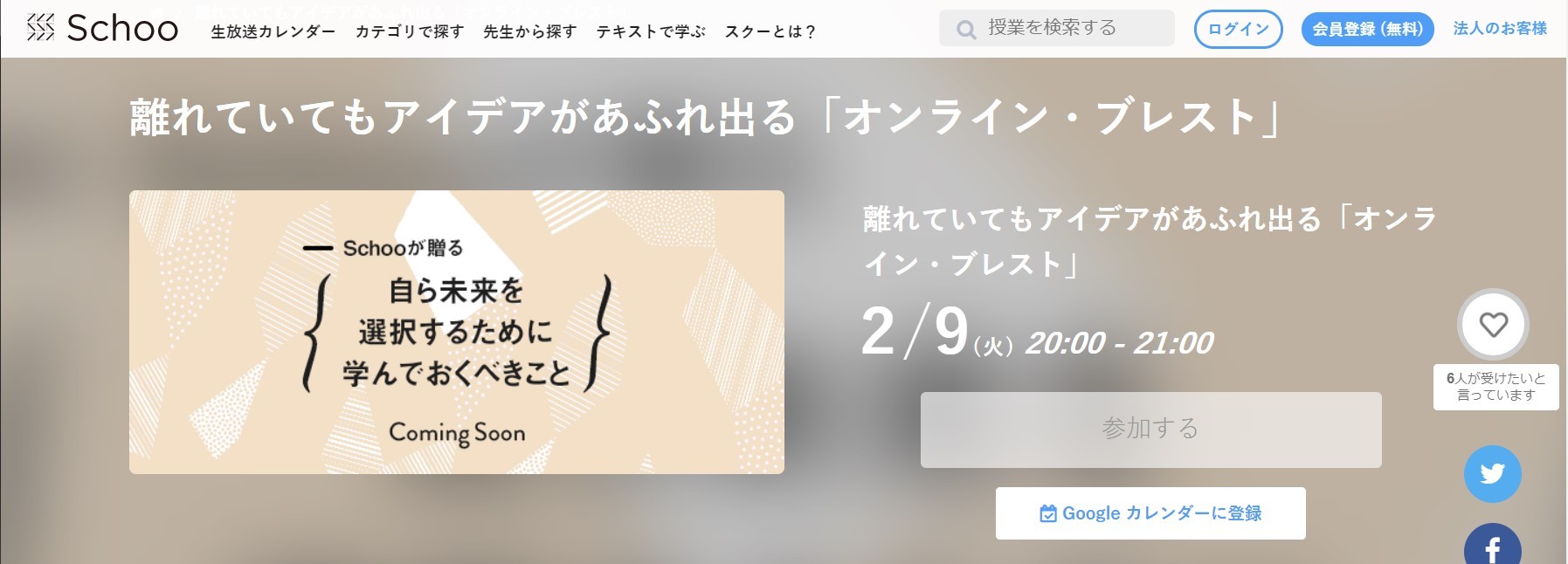 【ご案内】離れていてもアイデアがあふれ出る「オンライン・ブレスト」(2月9日)