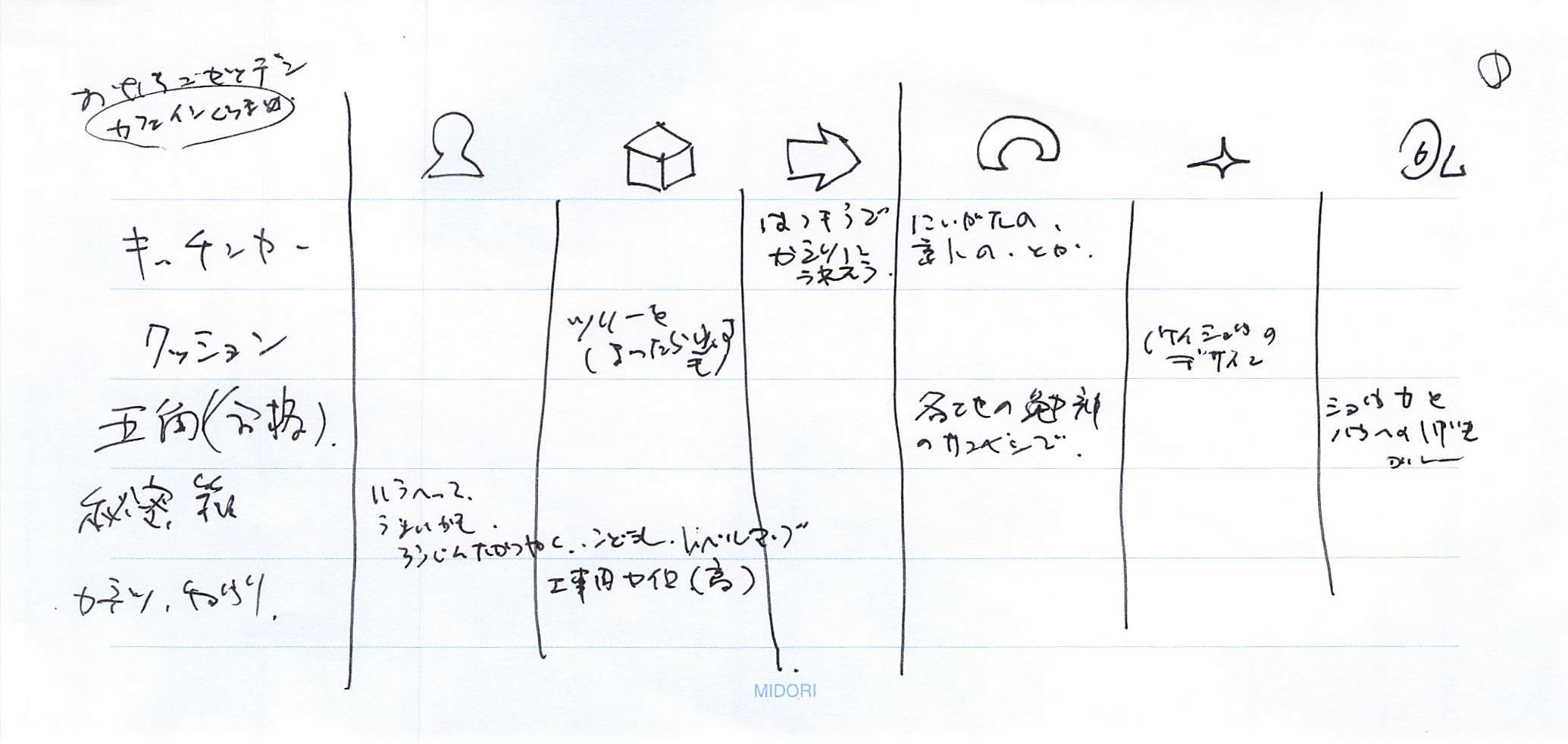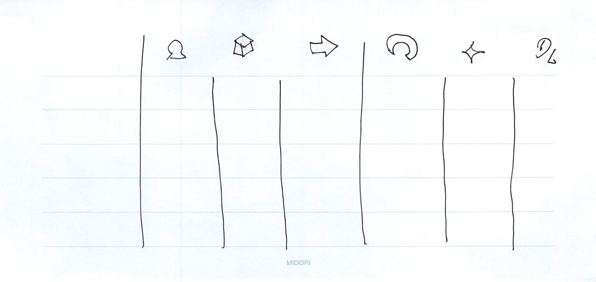 まず、手元にあった一筆箋(たまたま、なのですが)に、6観点のフォームをさっと書きました。