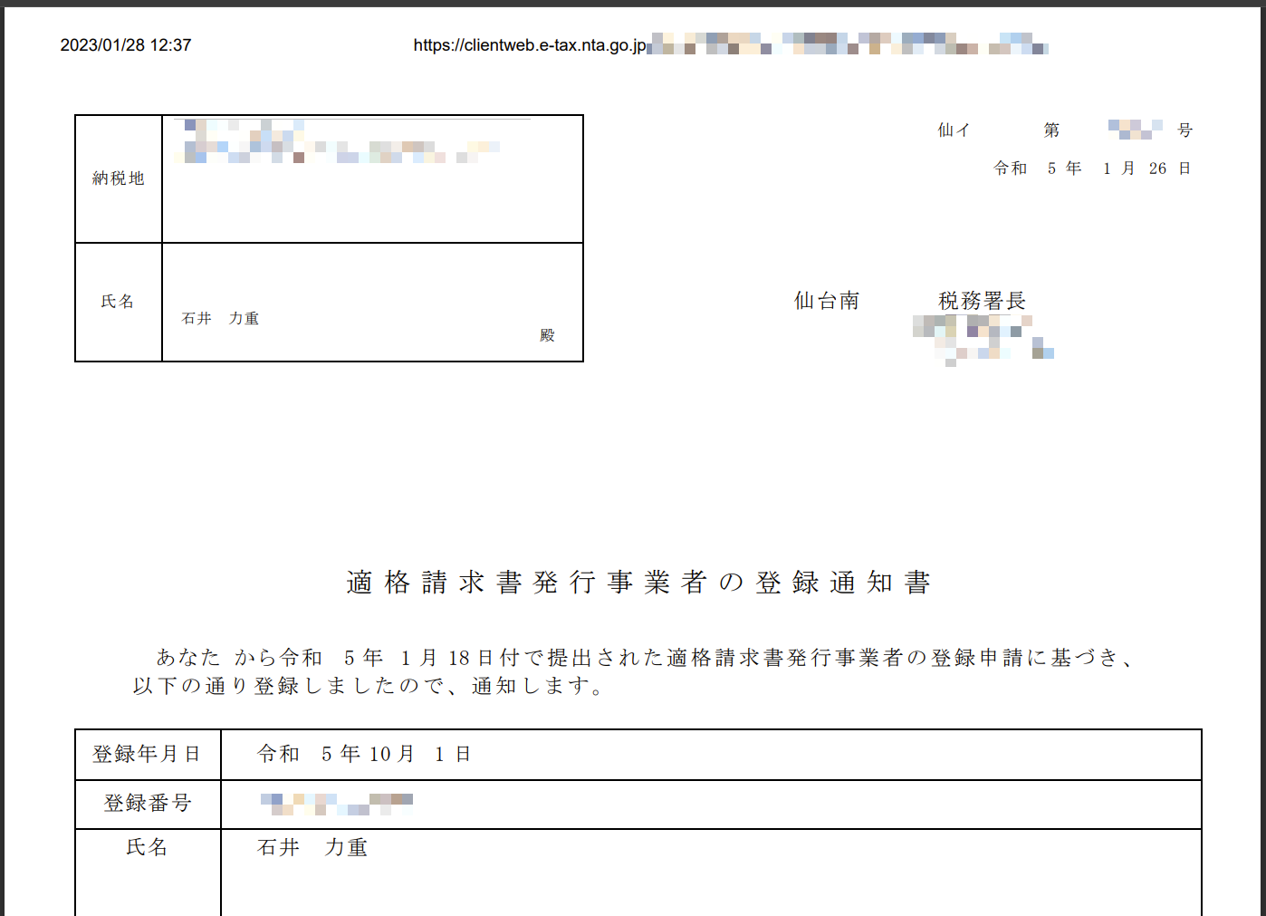 2023.01.28 アイデアプラント 6th(2021-2023) インボイス(適格請求書)の発行事業者の登録をしました。先ほど、適格請求書発行事業者の登録が完了しました。10月1日より、請求書には、石井力重の登録番号「T+13桁の数字」を記載して、ご請求書を発行します。 « ワークショップの様子が、夕方のニュースに少しだけ、出ていました。 現地3件、オンライン1件、の登壇の1月。長期出張の2月。 »