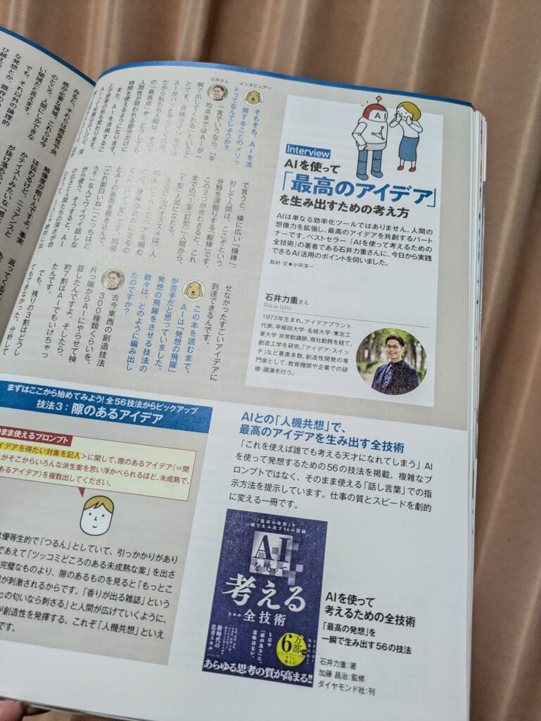 2025.12.27 『AIを使って考えるための全技術』 『Mac Fun』さんに取材記事が載りました12月27日発売(2026年2月号)のMac Funに2ページほど、石井の話が乗りました。他の紙面とはかなり違って「さくさくとした軽さ」の2ページであっという間に読めて理解できます。記者さんの筆の力がすごいです。◆◆◆Mac Fun 2026.2特集1 AI活用テク記事タイトル:AIを使って「最高のアイデア」を出すための考え方 « R-1グランプリ王者、友田オレさんと対談収録 日経新聞、2面に『AIを使って考えるための全技術』 »