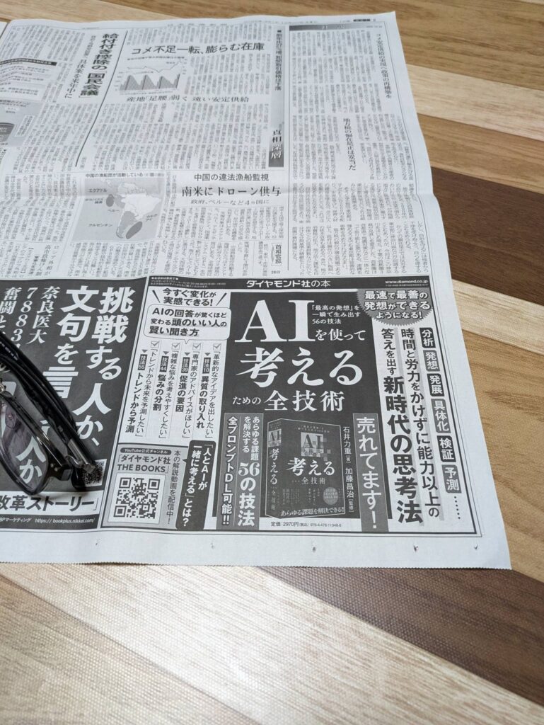 日経新聞、2面に『AIを使って考えるための全技術』