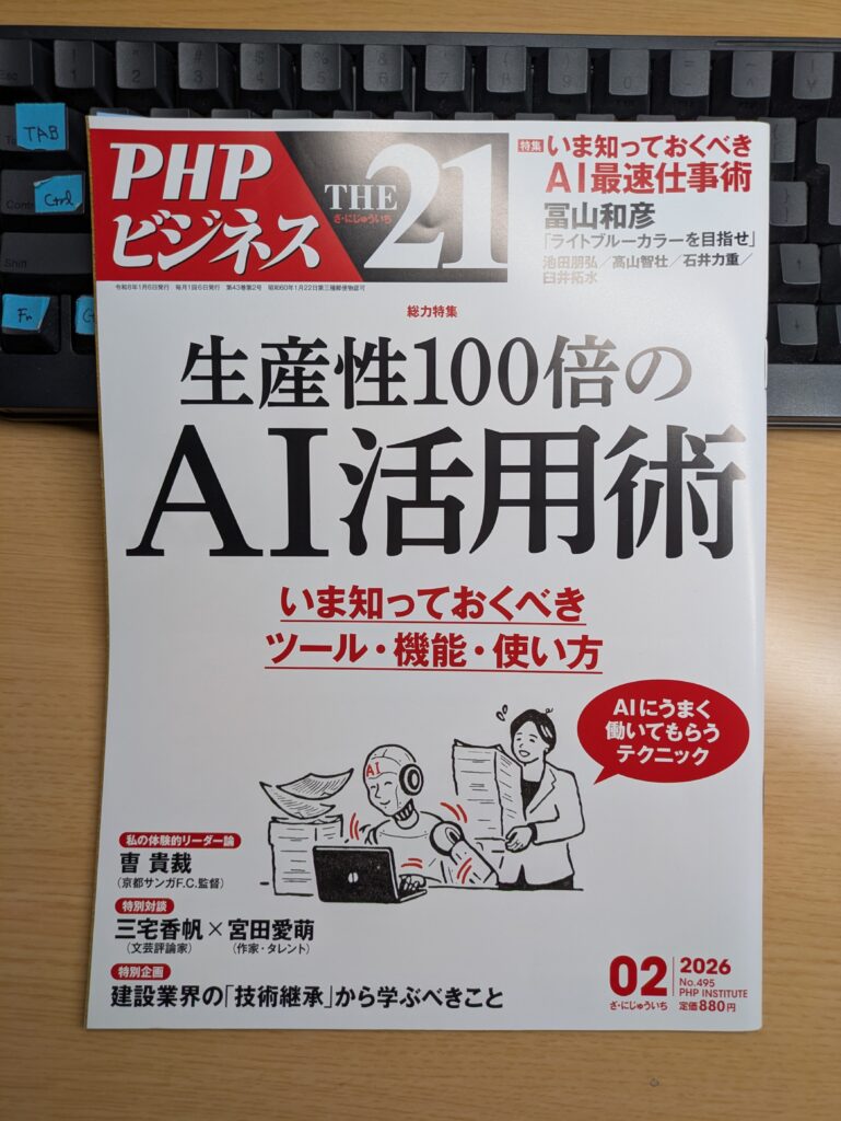 PHP研究所が発行するビジネス月刊誌The21に、『AIを使って考えるための全技術』著者として、AI活用についてのインタビュー記事が載りました。